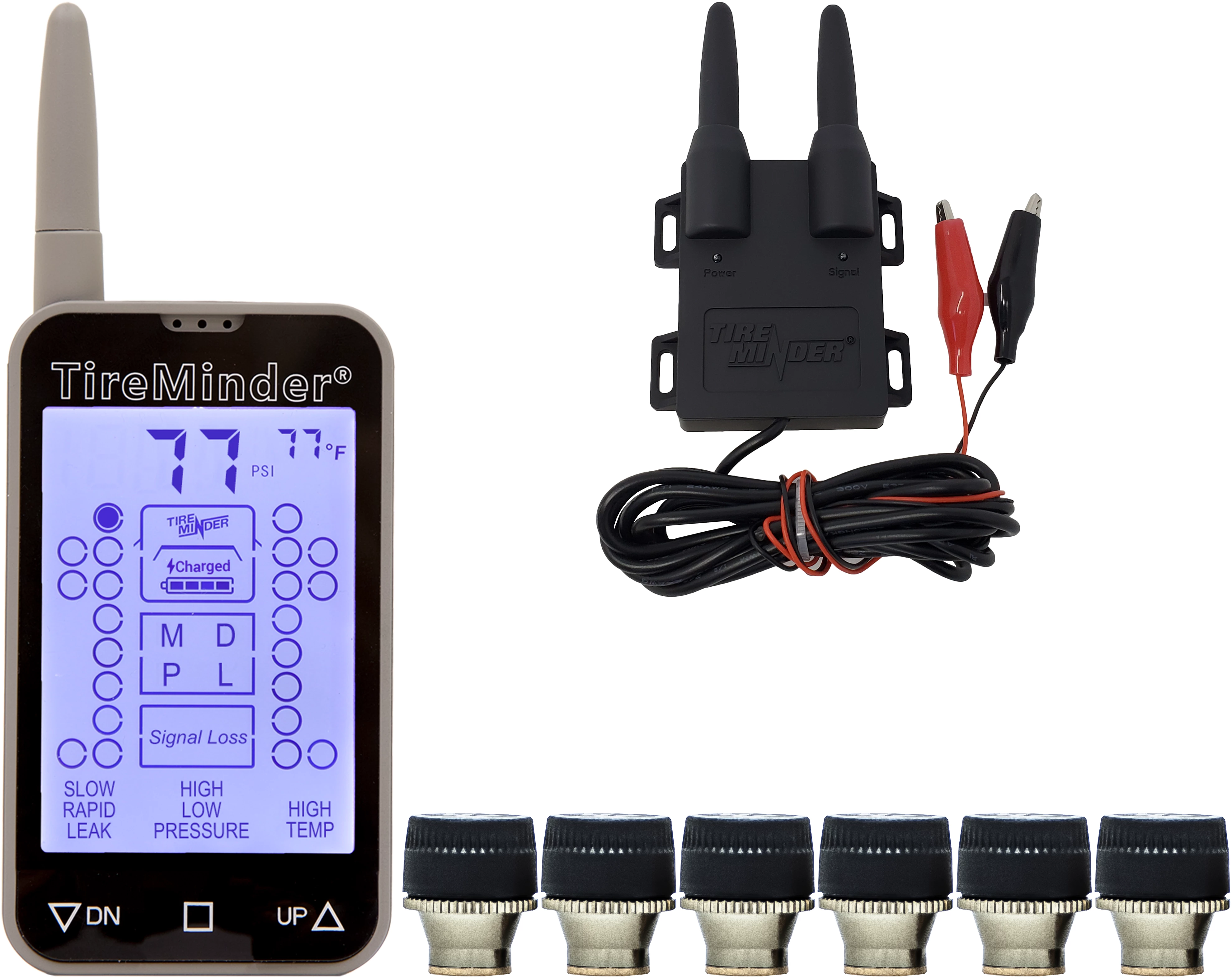 The TireMinder TM-77 RV Tire Monitoring System makes it easy to stay informed of any tire pressure or temperature issues you may have on your RV, motorhome, 5th wheel, or trailer. The TireMinder TM-77 features a large display, an extra strength signal booster and 6 standard transmitters.